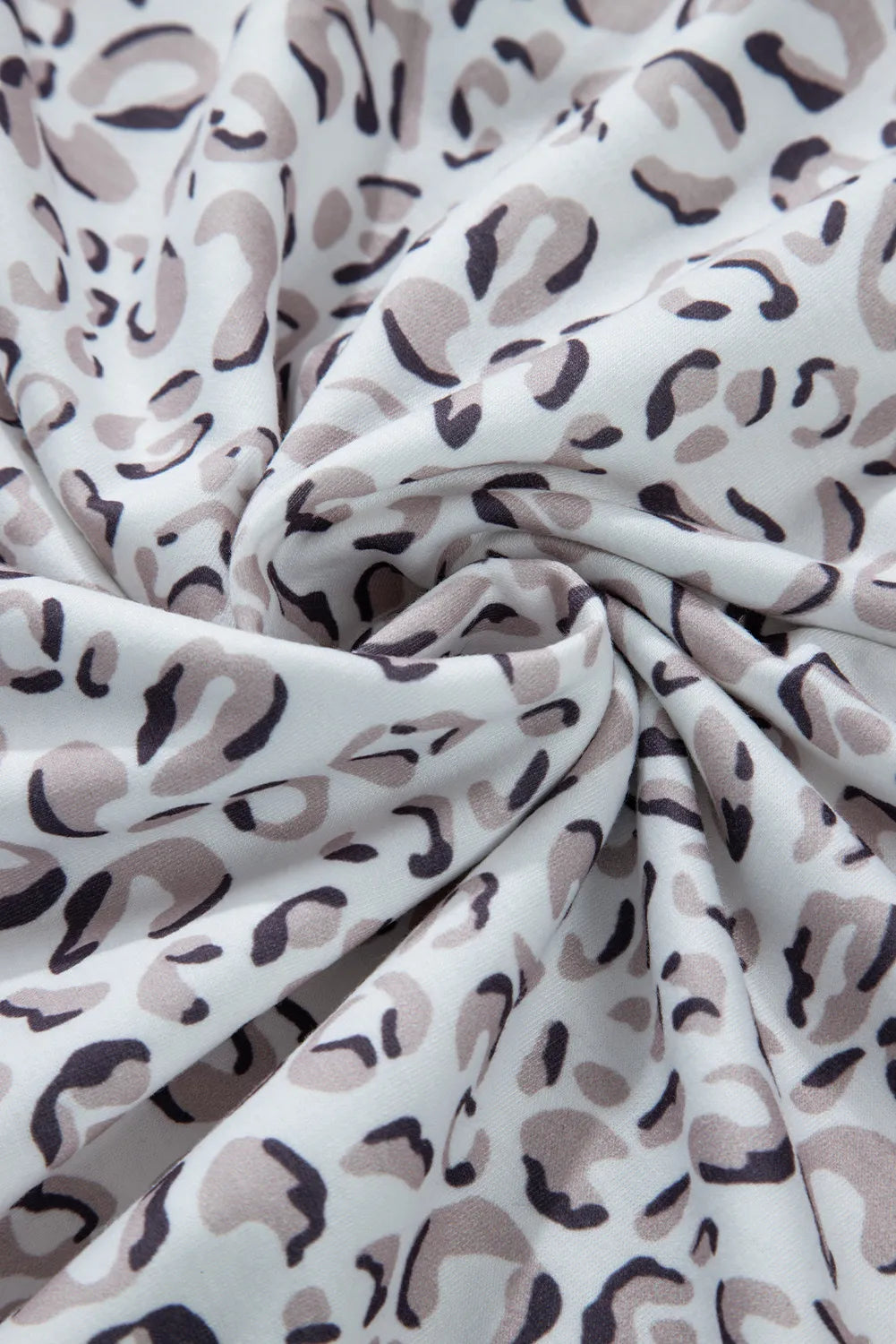 Drawstring Leopard Long Sleeve Hooded Top and Shorts Set