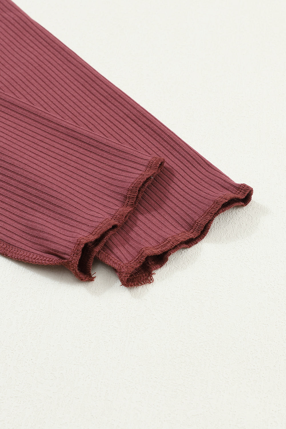 Exposed Seam Contrast Round Neck Long Sleeve T-Shirt