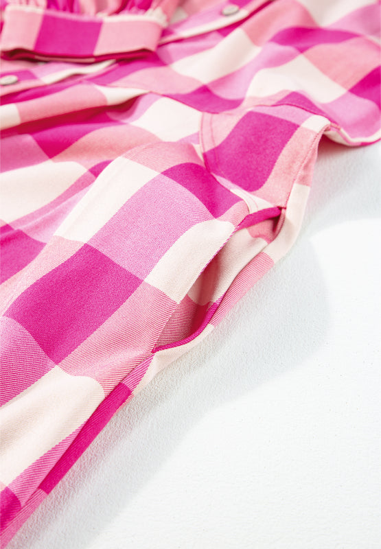 Ruched Plaid Three-Quarter Sleeve Shirt Dress
