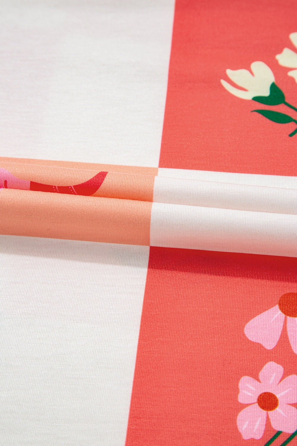 Checker Print Round Neck Short Sleeve T-Shirt