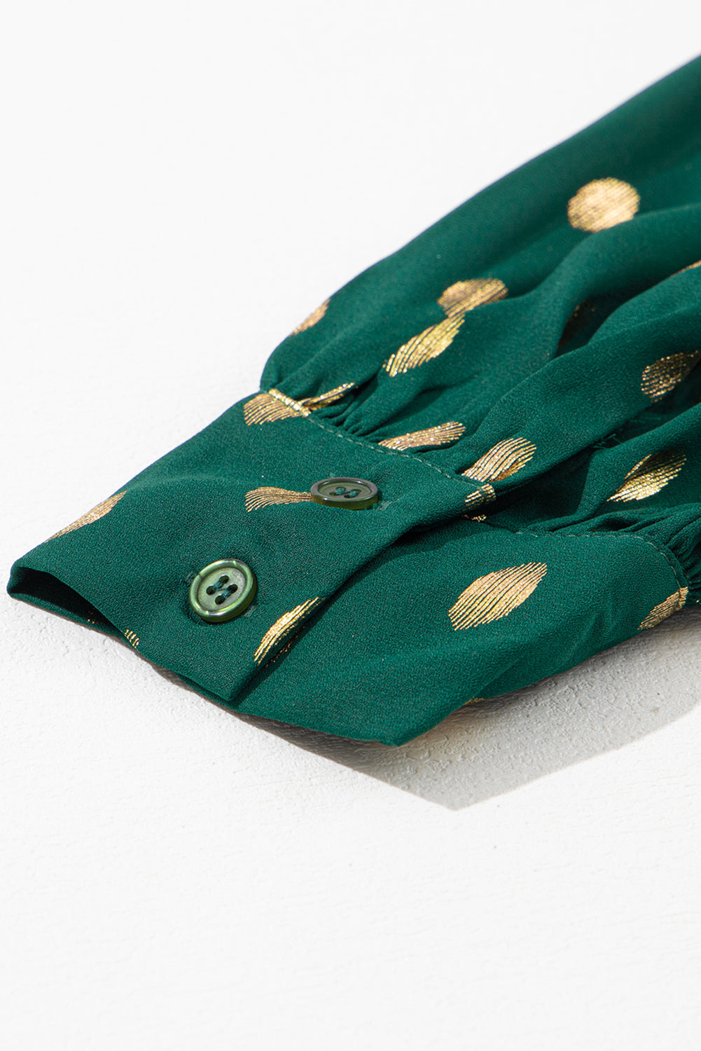 Cutout Printed Mock Neck Long Sleeve Blouse