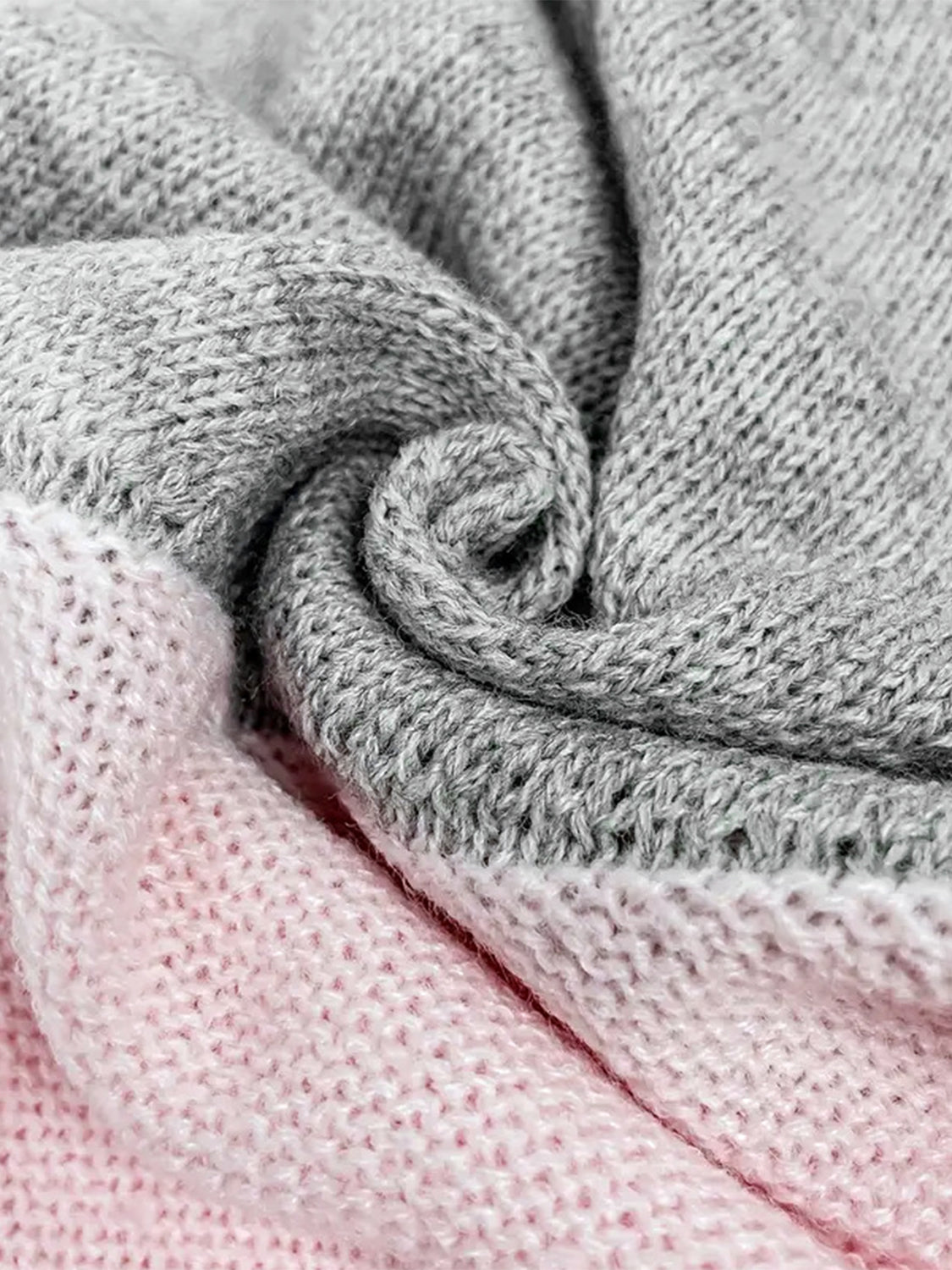 Openwork Contrast Round Neck Long Sleeve Knit Top