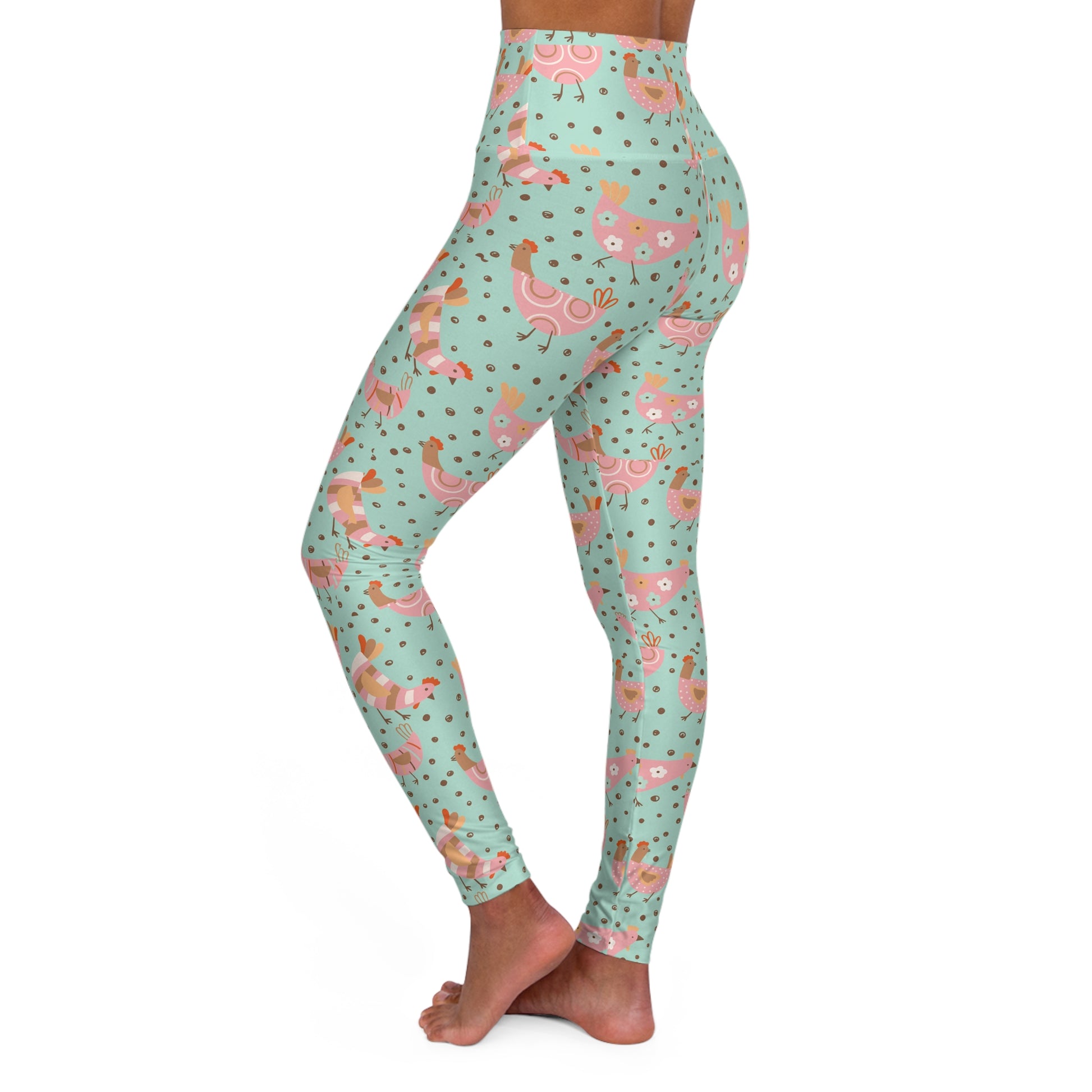 These Chickens Yoga Leggings are a funny and cute addition to your workout wardrobe. Perfect for farm animal lovers, these high waisted leggings offer a comfortable and stylish fit for your yoga sessions or everyday wear. Great as a unique gift for someone who loves chickens!